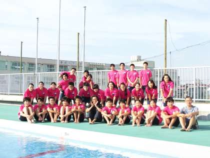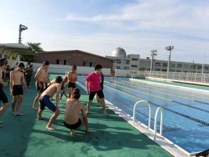 水泳部全員集合。お清めのあとは、入水。1番プールに入って、気持ちよく泳ぐことができました。たくさんの保護者の方に見守られて。ありがとうございました。