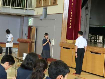世田谷警察署スクールサポーターの本多様を講師にセーフティ教室を実施しました。今年度は、SNSに関するトラブルを中心に、ビデオを見て、お話をしていただきました。