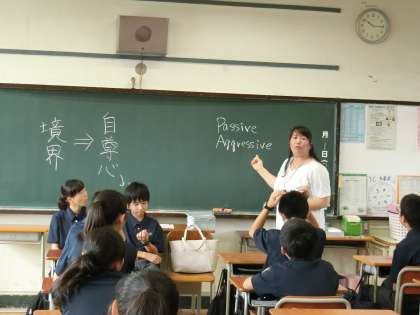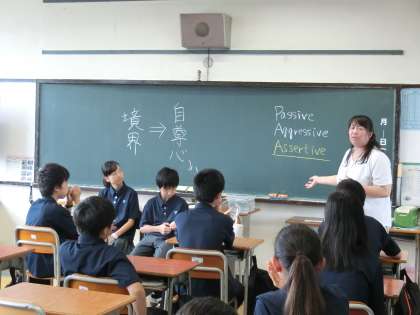 今日のいじめ防止プログラムのワークショップは、人とコミュニケーションをとるときに、自分の主張を相手にいやな思いをさせないで伝える方法について学びました。