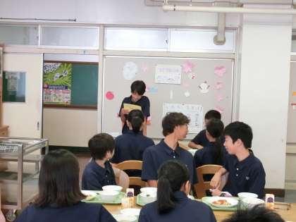 ランチルーム給食(2年B組)7月2日(火) 公開日 2019/07/02 更新日 2019/07/02 できごと 2年B組のランチルーム給食がありました。給食の時間がゆっくりとできないということで、各クラス学期に一度行っています。ランチルーム給食の時は、牛乳ではなくオレンジジュースがでます。栄養士さんや給食調理員の方に給食についてのお話も聞きました。いつもおいしい給食をありがとうございます。 いいね(0)