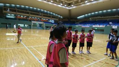 第一試合、B1チーム、11対18で八幡中学校に勝ちました。