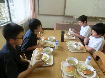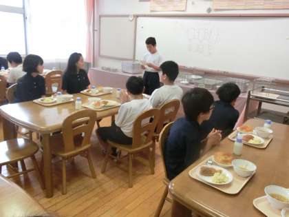 1年B組合同給食 7月12日(金) 公開日 2019/07/12 更新日 2019/07/12 できごと I組の1年生と1年B組の合同給食がありました。月曜日から始まった合同給食ですが、慣れてきたのか準備も早く、緊張もほぐれ、会話を楽しみながら給食を食べました。1学期は、あと1クラスですね。 いいね(0)