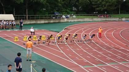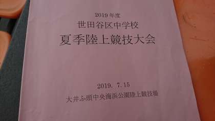 大井ふとう中央海浜公園陸上競技場で、世田谷区中学校夏季陸上競技大会か行われています。ほとんどの3年生にとっては最後の大会です。陸上部がんばれ!