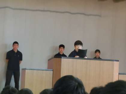 I組学級委員長は、「たくさんの行事を通して、クラスみんなで協力することができ、楽しいクラスができあがってきています。2学期もみんなで力をあわせて毎日をすごしたいと思います」と発表してくれました。