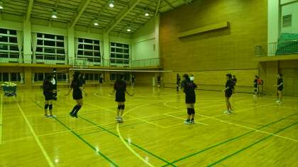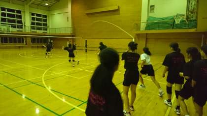 バレー部、夜練習始まりました。短縄跳びと大縄トレーニングをしてます。どのくらい跳べるかな。