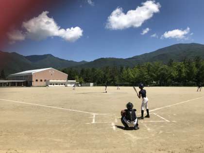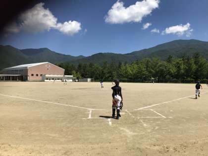 野球部、練習中。河口湖北中にて。