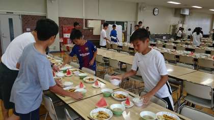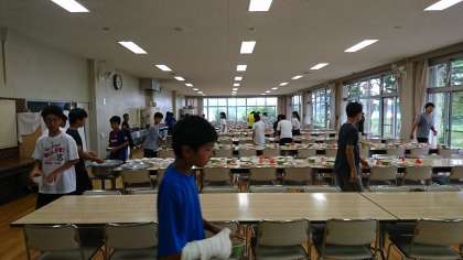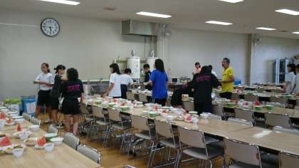 夕食準備中。食事係さん最後の夕飯です。みんなで美味しく食べるために協力して準備をありがとう。