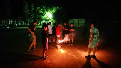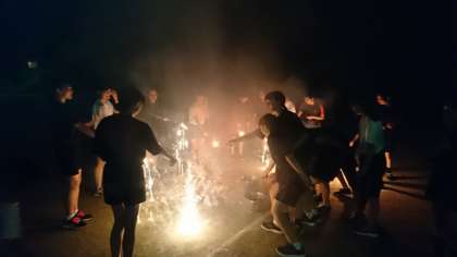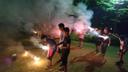 合宿最終日の夜は、練習を早く切り上げて、ミニ花火大会をしました。みんな大喜び。