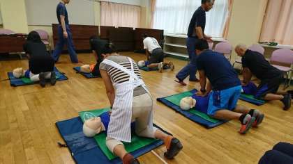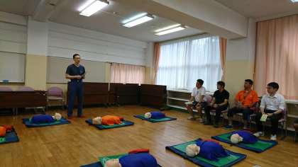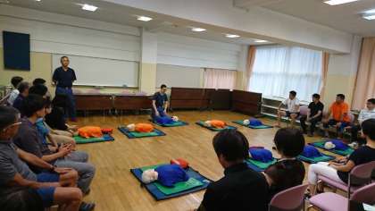 今日は、消防署の方に来ていただき、AEDを正しく操作し、命を助けるための講習会を実施しました。