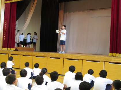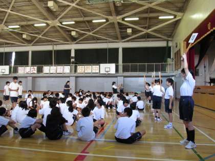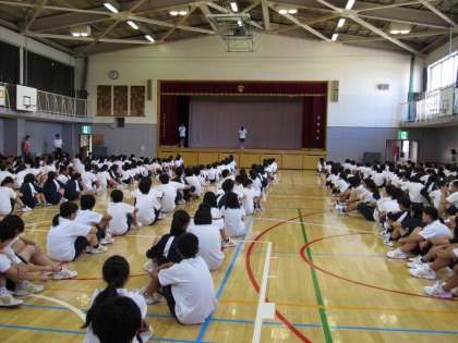 生徒会役員企画による「全校レク」を6時間目に行いました。全校レクを通して、全校生徒間の交流を深めようというのが大きな目的です。生徒会役員が一生懸命考え準備しました。どうだったかな?