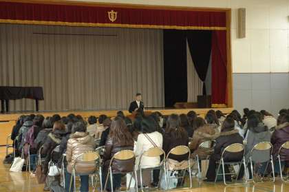 今年度最後の保護者会が開かれました。会に先立ち、出席者全員でこのたびの東北地方太平洋沖地震で亡くなられた多くの方々に対し1分間の黙とうをしていただきました。
