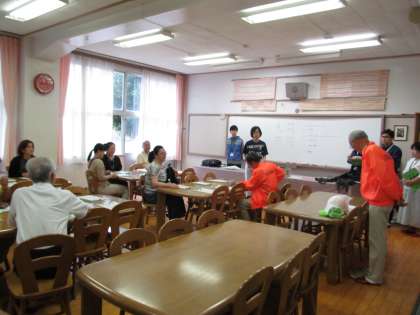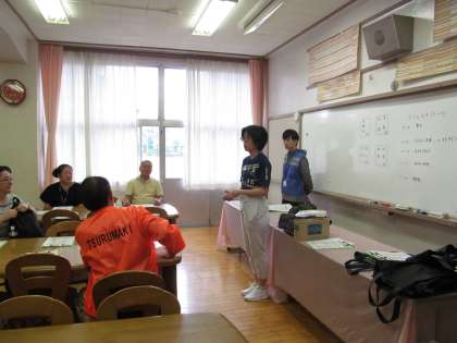 避難所運営員会では、避難所開設に備えて、学校の備蓄倉庫等の見学会を開催しました。施設見学の後、各担当班で意見を出し合いました。