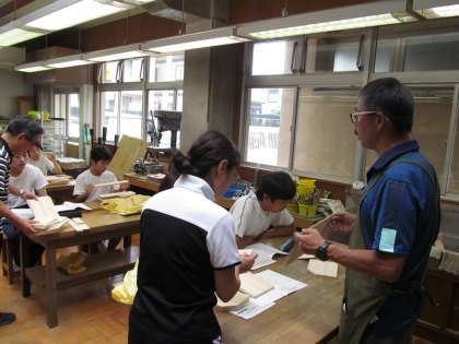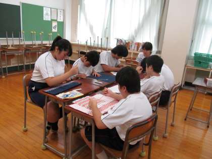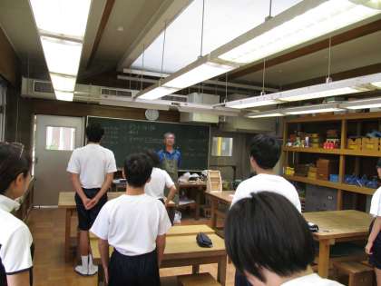 I組の技術(作業)の時間は、9月から一倉先生に授業をお願いしています。1学期から作っていた木工作品に取り組んでいます。家庭科では、スウェーデン刺繍も頑張っています。