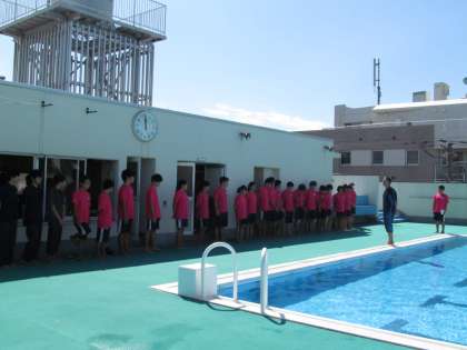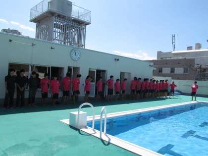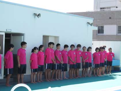 水泳部で、プール修めの会をしました。6月から3か月間たくさん泳いで、お世話になったプールに感謝の気持ちを込めて、行いました。