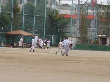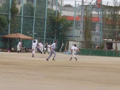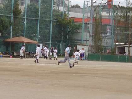 3回表。スリーアウトチェンジ。弦巻の攻撃です。一番バッター、塁に出ました。