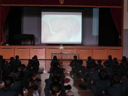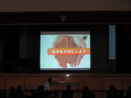 2年生では、1時間目にSOS出し方に関する教育の一環として、授業を実施をしました。様々な困難に直面したり、ストレスの対処法を「自分を大切にしよう」のビデオを見て学びました。