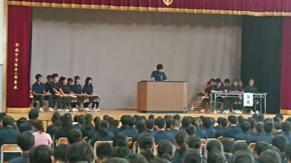 後期生徒総会が始まりました。自主、自立、自治を目指して、一人一人が主体的に、より良い学校生活にしてください。