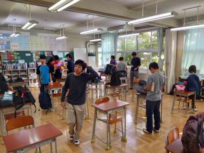 今日から二泊三日、河口湖移動教室です。出発前のI組。わくわくドキドキ。とても嬉しそうです。