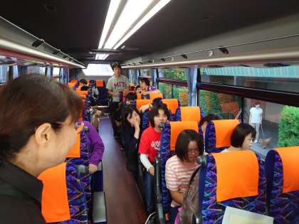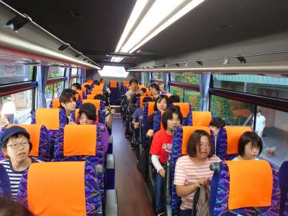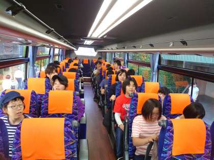 バスのなかでは、3年生がシートベルトしてとか、声をかけて、バスガイドさんに言われる前にみんなシートベルトができてました。お隣の人とお話ししたり、歌を歌ったりしていました。河口湖は快晴だそうです。