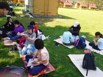 お弁当の時間です。斑ごとに、先生も一緒に食べてます。美味しいお弁当ありがとうございます。