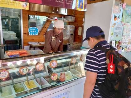 お弁当のあとは、遊びの時間。ジェラートを食べてます。