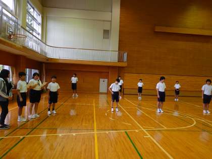 入浴終了後、夜のレクの練習中です。