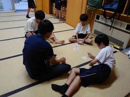 夕食前の自由時間。部屋ごとにトランプやウノ、百人一首などで楽しみました。