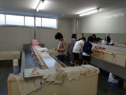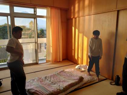 6時起床。いつもより早い起床の人もいるので、眠そうでしたが、お布団の片付け、歯磨き、自分で朝の準備をして、朝礼に向かいました。