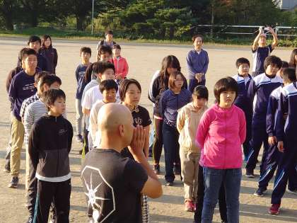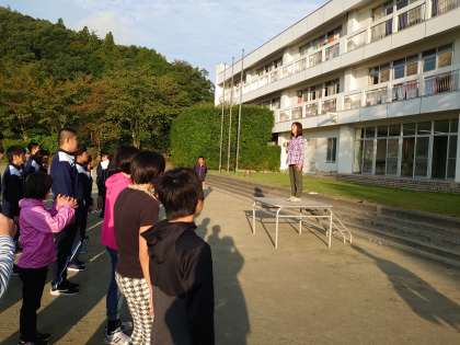 朝の朝礼。さすがに河口湖の朝は涼しいですが、みんな元気に朝礼です。爽やかな風をうけながら、美味しい空気をいっぱいすって、ラジオ体操も頑張りました。