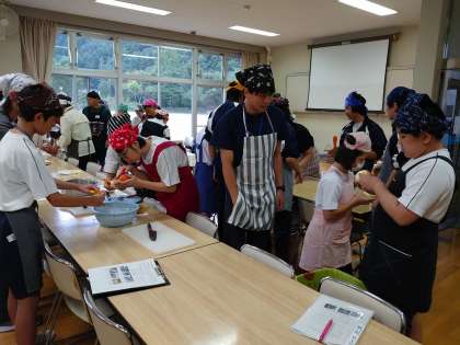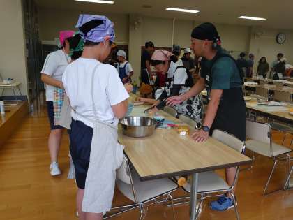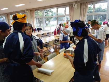カレー作り始まりました。グループごとに野菜を切ったりしています。準備がんばれ!
