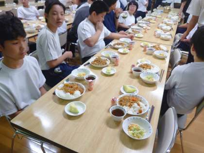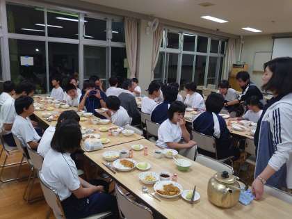 6時夕食開始。自分達で作ったカレーをたくさん食べてください。いただきます!