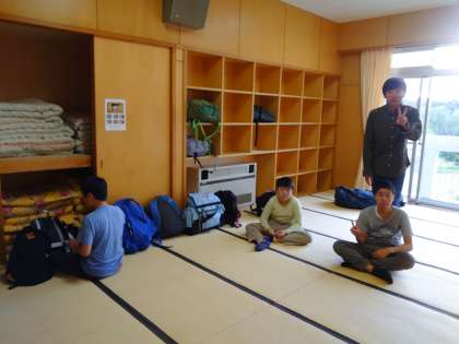 みんなで協力して、掃除をして、3日間お世話になった部屋もすっかり綺麗になりました。お世話になりました。来たときよりもきれいになりました。最後は体育館での閉園式です。