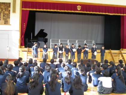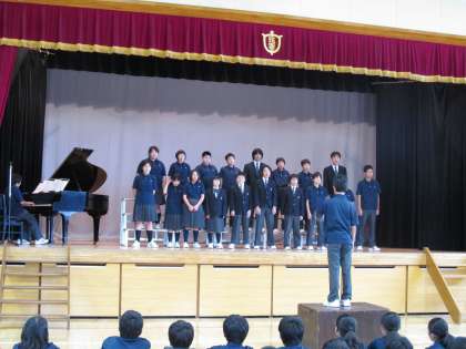 6時間目に、1年生徒I組の生徒で合同学年練習をしました。全員で課題曲を歌い、I組からクラス合唱を歌いました。I組はトップバッター、少し緊張していましたが、練習の甲斐あって美しい声が響いていました。合唱コンクールまで、あと2週間、張り切っていきましょう。