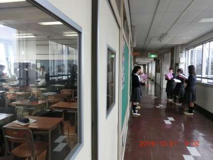 合唱コンクールC期間 10月21日(月) 公開日 2019/10/21 更新日 2019/10/21 できごと いよいよ今週末合唱コンクールです。今週のスタートも美しい歌声で、朝のスタートです。教室、廊下、特別教室、いろいろな部屋から美しいハーモニーが響いてきます。 いいね(0)