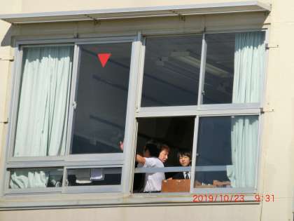 雨で延期になった避難訓練を行いました。これからの時期火災が増えてきます。家庭科室で火事が起こったことを想定した避難訓練でした。教室の窓を閉めて、煙を吸わないようにハンカチや手で口を押さえながら、「おかしも」を守り、素早く校庭に避難をしました。集合してからも、誰一人自分勝手な話をする人はいませんでした。坂本先生や石原先生の話を聞く態度も立派でした。訓練に真剣に取り組む姿勢が、災害の時に自分の身を守り、他人の命を守ることにつながります。