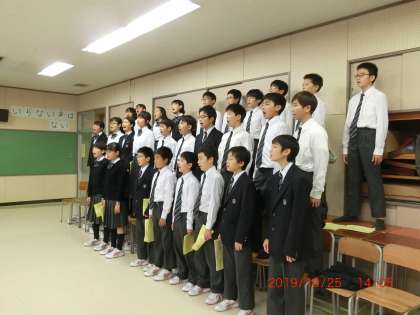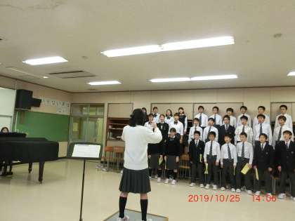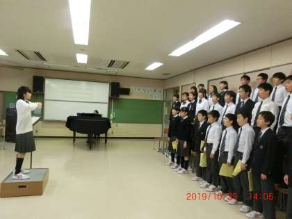 合唱コンクール最後の放課後練習9 10月25日(金) 公開日 2019/10/25 更新日 2019/10/25 できごと 1年B組最後の音楽室の練習でした。みんな歌を歌うことを楽しんでいました。 いいね(0)