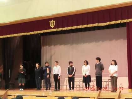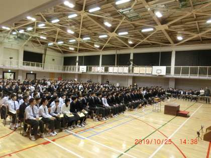 合唱コンクール前日指導1 10月25日(金) 公開日 2019/10/25 更新日 2019/10/25 できごと 放課後練習終了後、全校生徒が体育館に集まって、前日指導を行いました。審査員の紹介が審査員長からありました。一人一人に大きな拍手が送られました。 いいね(0)