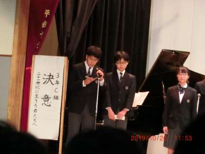 3年生最後の合唱コンクール、トップはC組です。自由曲「決意」