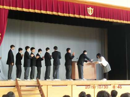 表彰 10月30日(水) 公開日 2019/10/30 更新日 2019/10/30 できごと 卓球部新人戦、野球部新人戦、世田谷区立連合陸上大会の表彰を行いました。 卓球は個人で3位。野球部は3位でした。 連合陸上大会では、上位8位までに入った人たちが賞状をもらいました。 いいね(0)