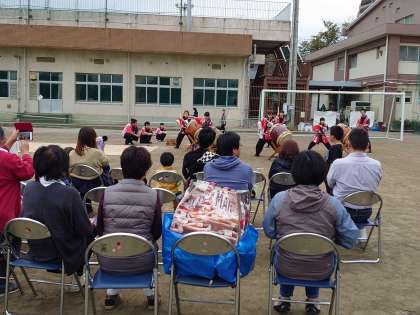 校舎改築のため、今回で一応終わりになります。あと、一時間です。ご参加お待ちしています。太鼓の演奏をやっています。