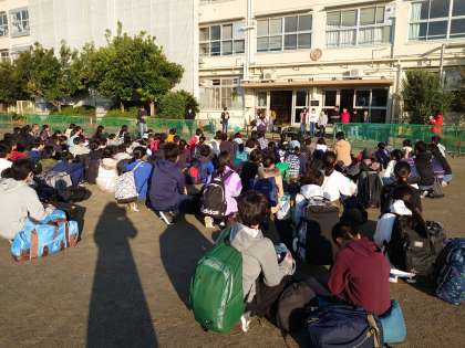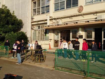 出発式を行いました。ルール、マナーを守り、自分で考えて、正しい判断、行動できる3日間にしてください。思い出に残る、成長できる移動教室にしていきましょう。