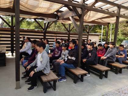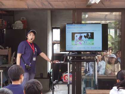 A組は市の瀬牧場にお世話になっています。今酪農家さんから牧場のお仕事等についてお話を聞いています。
