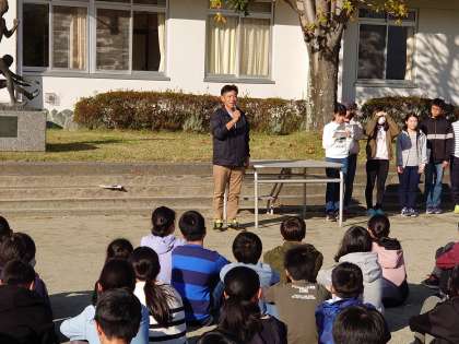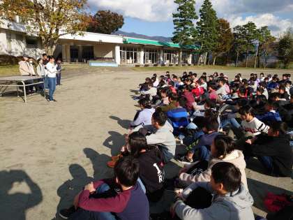 学園到着。開園式を行い、小林さんからお話を伺いました。雲に隠れていた富士山も顔を出しました。