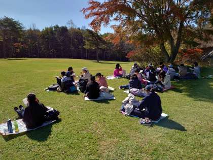 お弁当を食べて、後半に備えます。最初に着いたチームは後半スタートしました。