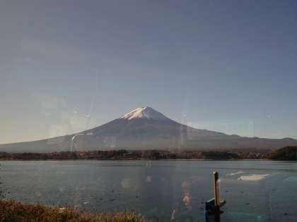 いよいよ富士山五合目を目指します。河口湖から見る富士山に別れを告げて。