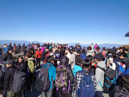 五合目到着です。これからお中道を歩きます。富士山の真ん中です。2305m。寒いです。