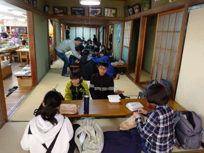 奥庭荘が見えてきました。これからお弁当の時間です。けんちん汁飲み放題です。