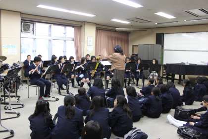 4月19日(火)ブラスバンド部・演劇部の合同新入生歓迎発表会がありました。先輩たちのユーモアあふれる演技と楽器の綺麗な旋律に新入生の目は輝いていました。ぜひ来年もこの行事を新しい後輩に見せてほしいと思います。
