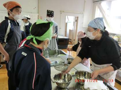 I組調理実習1 11月25日(月) 公開日 2019/11/25 更新日 2019/11/25 できごと 2つのグループに分かれて、調理実習をしました。今日のメニューは、おいもの蒸しパン作りです。 いいね(0)