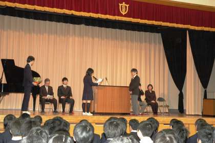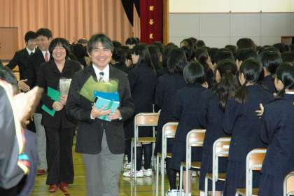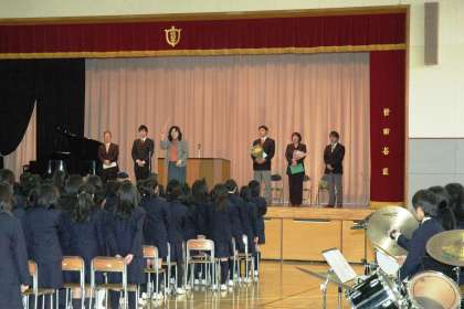 4月22日(金)、本校体育館において離任式が行われました。お世話になった先生方へ感謝の気持ちを込めて、代表生徒による「お礼の言葉」と「花束の贈呈」をしました。離任なさった先生方からは、弦巻中に対する熱い想いのこめられたメッセージをいただき、生徒たちも真剣に聞き入っていました。最後は生徒全員で「旅立ちの日に」を合唱し、離任された先生方を送りました。とても気持ちのこもった素敵な離任式でした。
